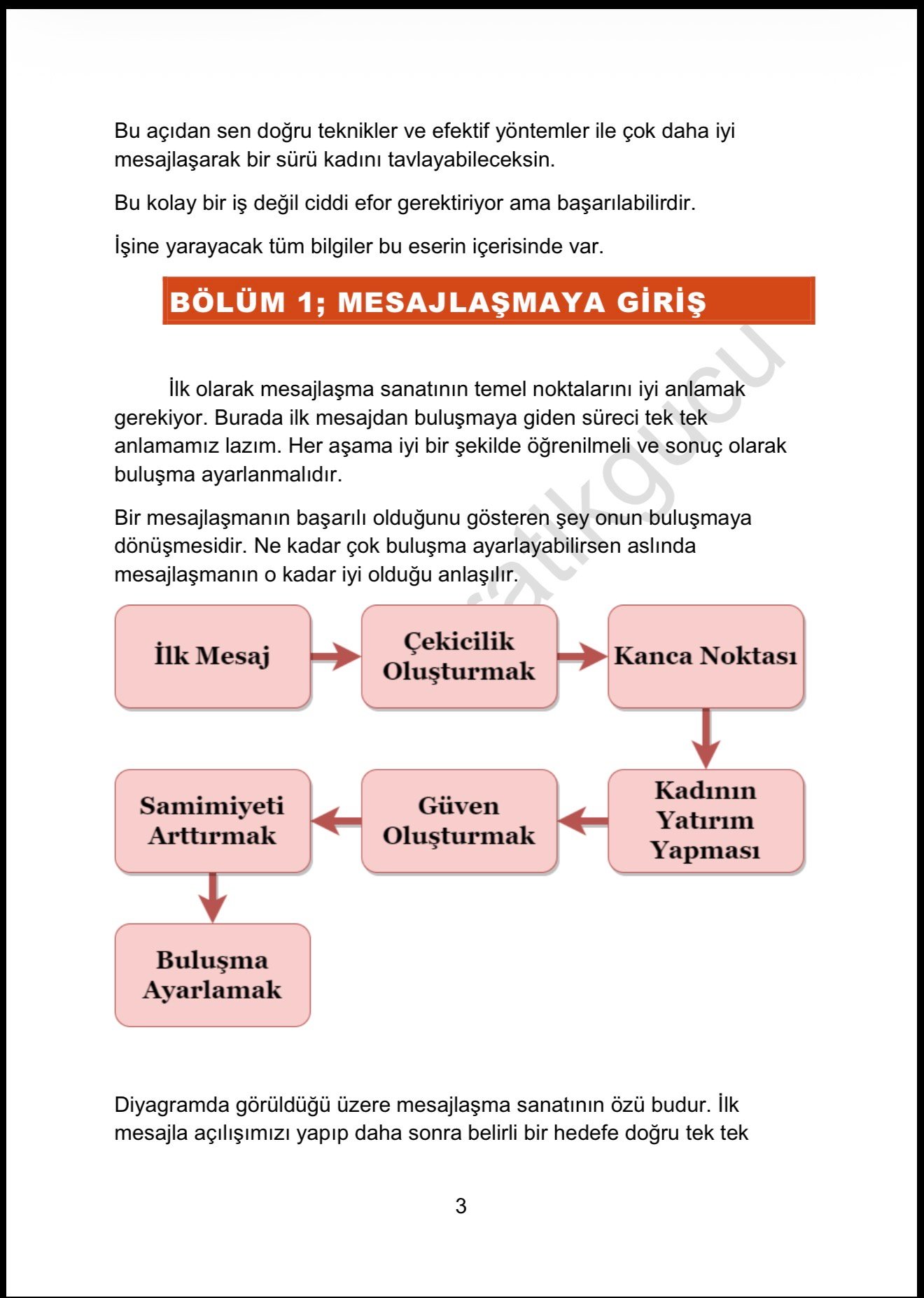 Reklamdan görüp geldim inceledim ve aldım deneyeyim ne olacak dedim. Kızlardan görüldü yiyip duruyorum tipimde fena değil ama olmuyordu bir şey eksikti mesaja kafam basmıyor. Bu kitapla sırrı çözdüm resmen mesajlaşma sırları bunda saklıymış. Kitap akıcı ve iş yapıyor çok güzel.