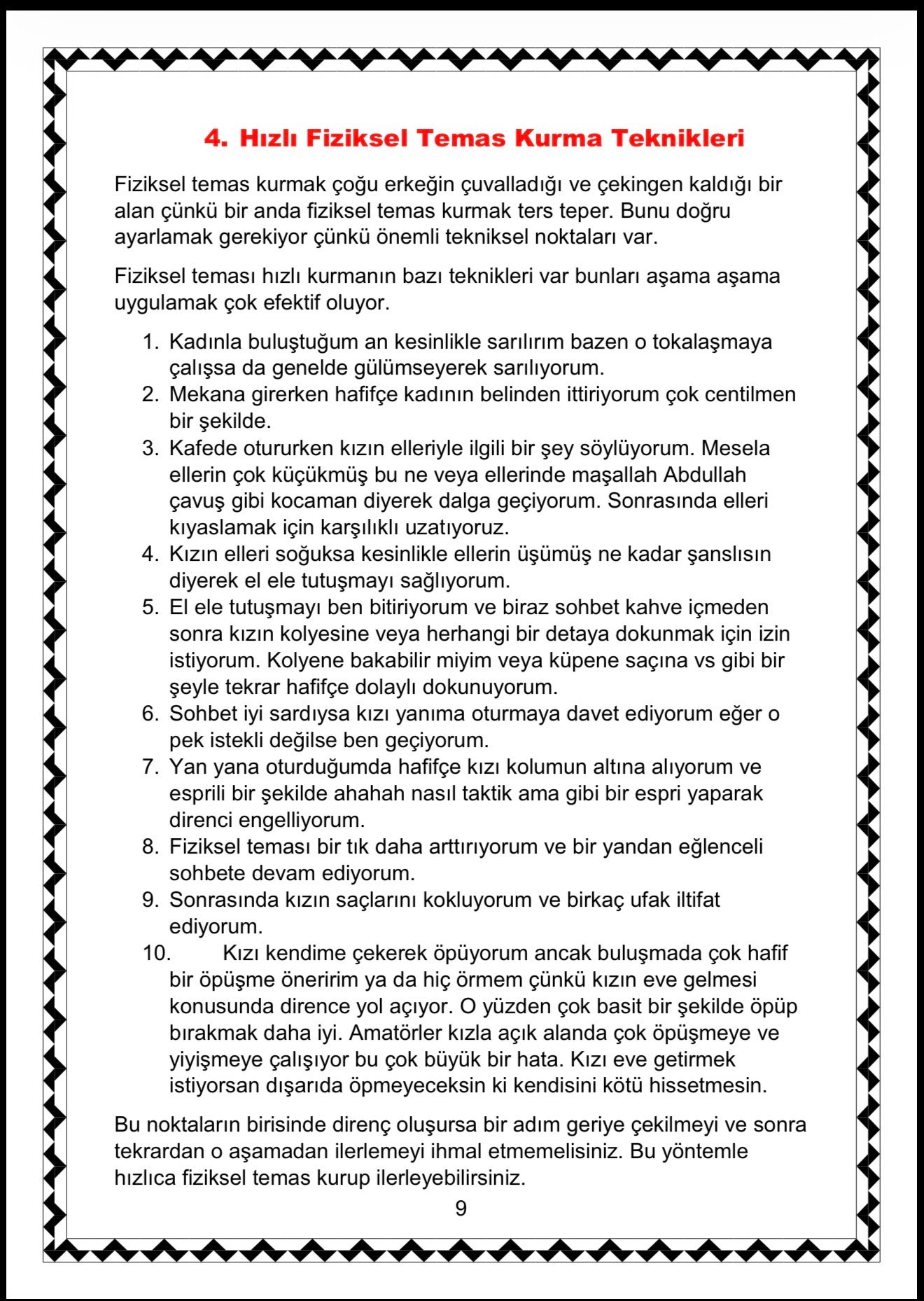 Bu taktiklerin her biri çok özel üzerinde ustalaşılması lazım çokça pratikle gelişen adam her kızı tavlar